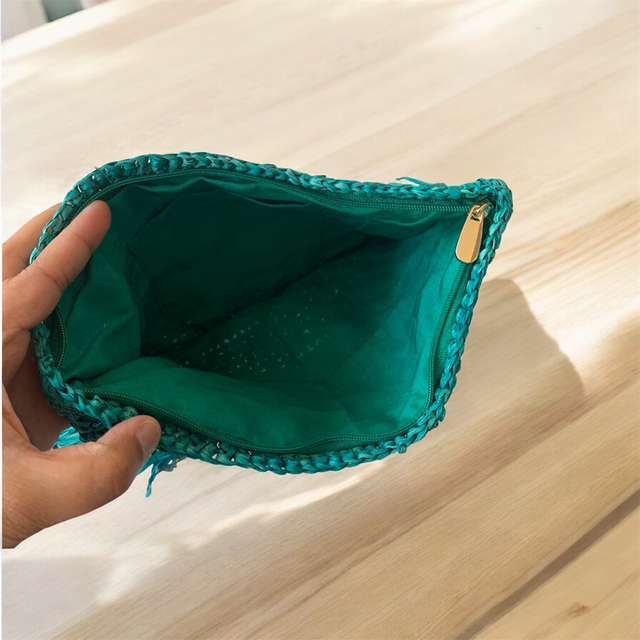 Pochette en raphia vert| Raffia Straw Clutch - Green